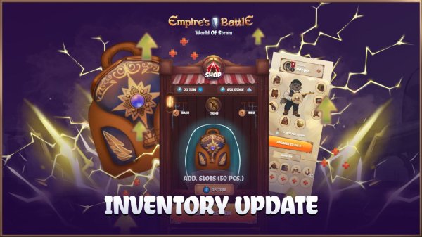 В игре в магазине появились новые механизмы, которые позволяют расширить размер вашего инвентаря на 10, 50 и 100 ячеек! Максимально возможное количество ячеек в инвентаре — 150.
