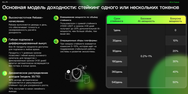 30% от дохода реинвестируется в стейкинг на тариф выше вашего текущего. 70% направляется в контракт линейного вывода и блокируются. Вы можете подать запрос на равномерное извлечение средств в течение 180, 90, 30, 15 или 5 дней. Если выбираете 180 дней, то комиссий не будет, а если меньше, то уже придётся сжечь от 10% до 30% токенов.
