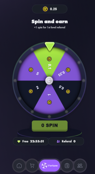 Крутите спин и получайте шанс выиграть внутренний токен G. На него можно будет купить кроссовки, то есть абсолютно не вкладывая деньги!