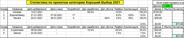 Так что за февраль было добавлено не столь много проектов и пока что по ним профита мало. Будем смотреть профит по проектам февраля, в марте.