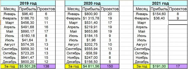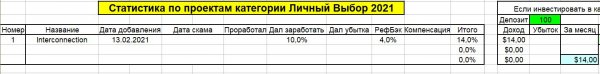 Я буду вести отчётность по всем проектам (за исключением проектов со статусом Под страховкой) и буду открыто показывать сколько проект проработал, сколько можно было заработать или же потерять.