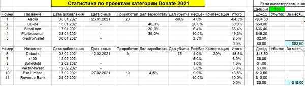 Кстати, январь у нас закрылся с минусом, но этот минус, как я и говорил, перекроется в феврале. Всё просто, проекты, что я добавил в январе, по итогу дали хороший профит и январь получился прибыльным.